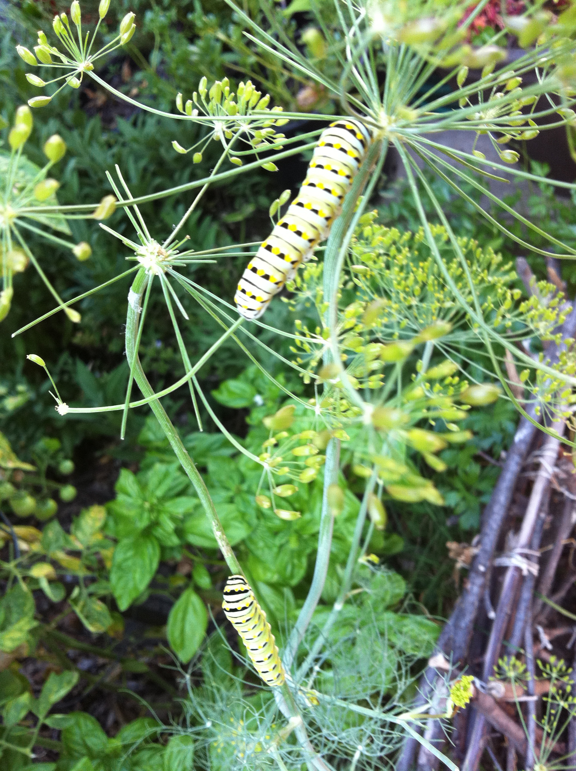 The Swallowtail Caterpillars quadrupled in size of the 10 days we observed them, feeding on the Dill in our Herbal Garden Beds, Summer 2011.