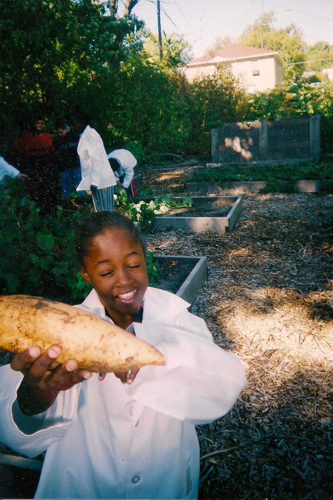 This workshop begins with a read-aloud about harvest. Students are asked to define the word “harvest.” Mentors and students discuss how the sweet potatoes were originally planted in the spring and have grown all summer. Mentors discuss how George Washington Carver describe convinced the cotton farmers in the south, to grow sweet potatoes as a way to replenish the soil, depleted from the cotton. Mentors and students discuss the nutrition and valuable vitamins contained in sweet potatoes. Mentors advise in the best methods for harvest of sweet potatoes from our garden beds. Students are given instruction on how to best use our tools Students harvest sweet potatoes by digging them up from the beds. Each class will be responsible for digging up one 4′ X 12′ foot bed. Potatoes will be stored, and prepared for November’s workshops.